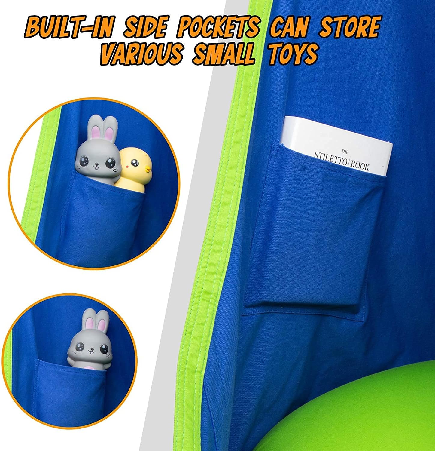 Entdecke den perfekten Rückzugsort für dein Kind mit unserem gemütlichen Hängesessel, der sich ideal für den Innen- und Außenbereich eignet. Dank der sanften Schaukelbewegungen und dem komfortablen aufblasbaren Kissen wird dein Kind Momente der Ruhe und Entspannung genießen.
