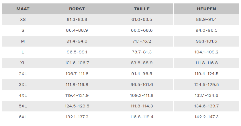Größentabelle (cm):
