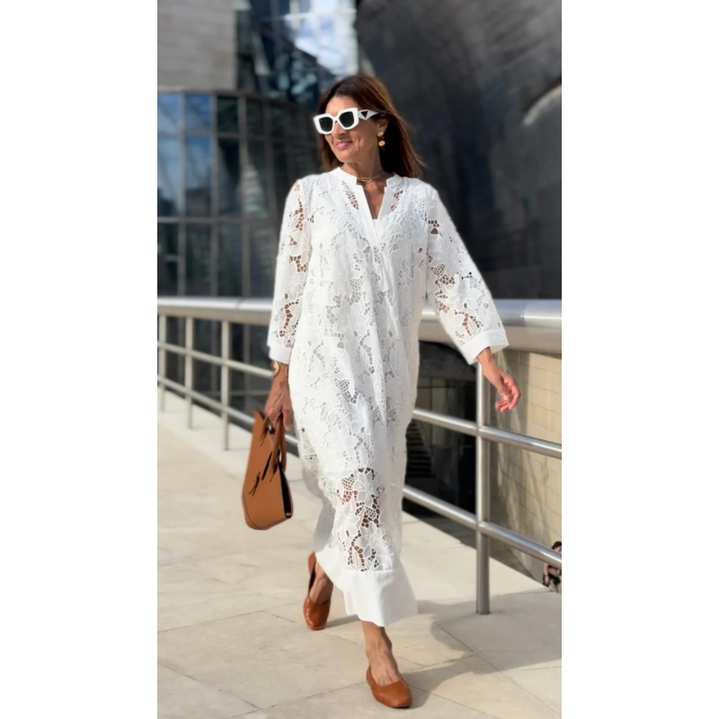 Damen Spitzenkleid Mit 3/4 Ärmeln - Elegantes Maxi-Kleid