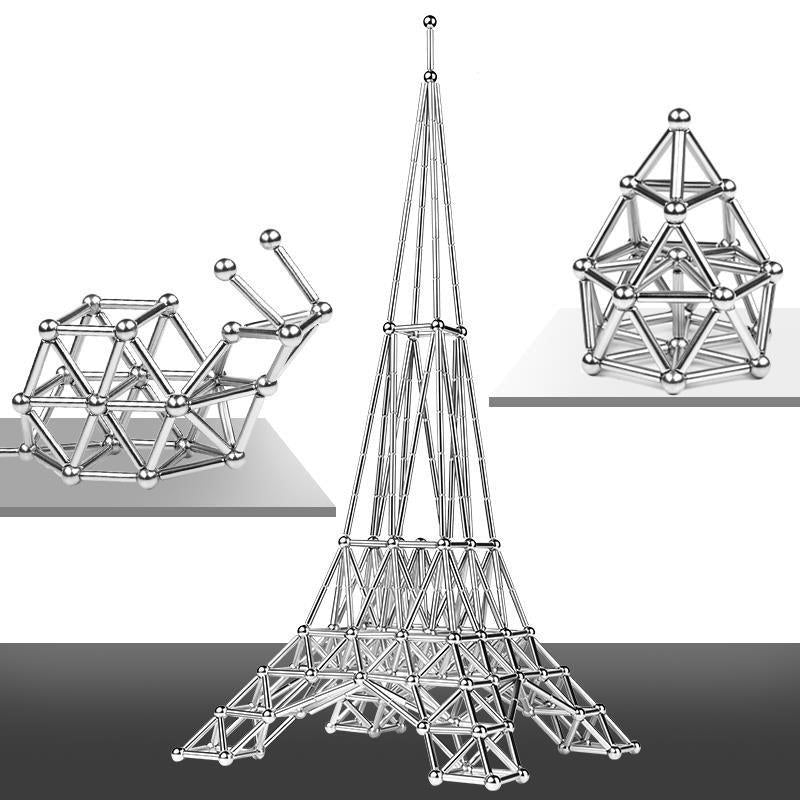 "Kreatives Set mit magnetischen Kugeln und silbernen Stäben, ideales DIY-Spielzeug für innovative Bauideen."
